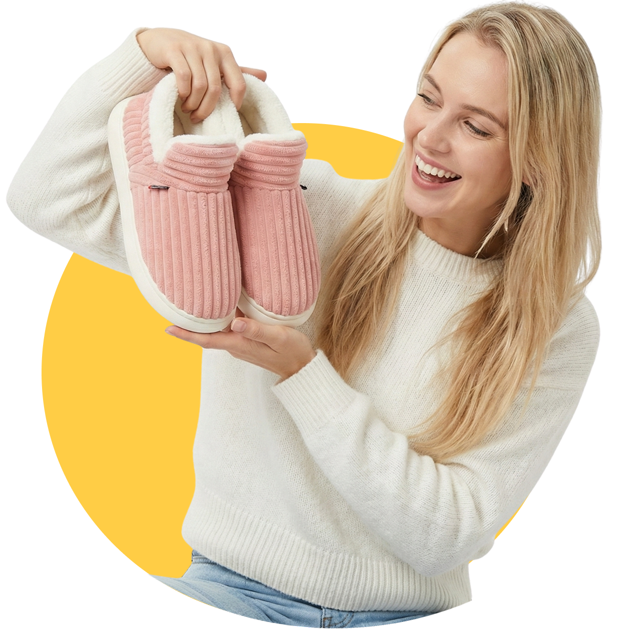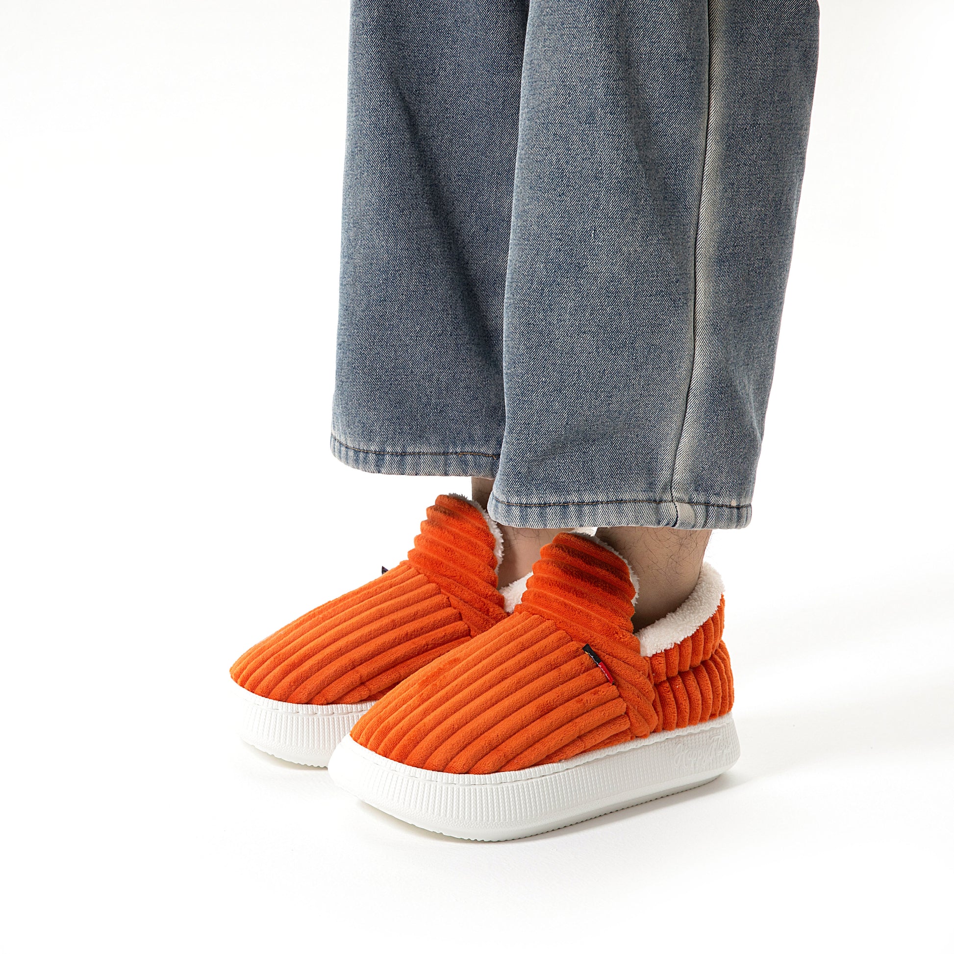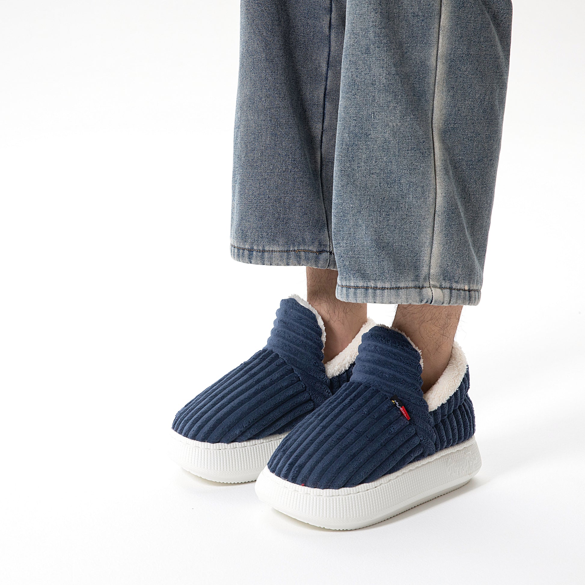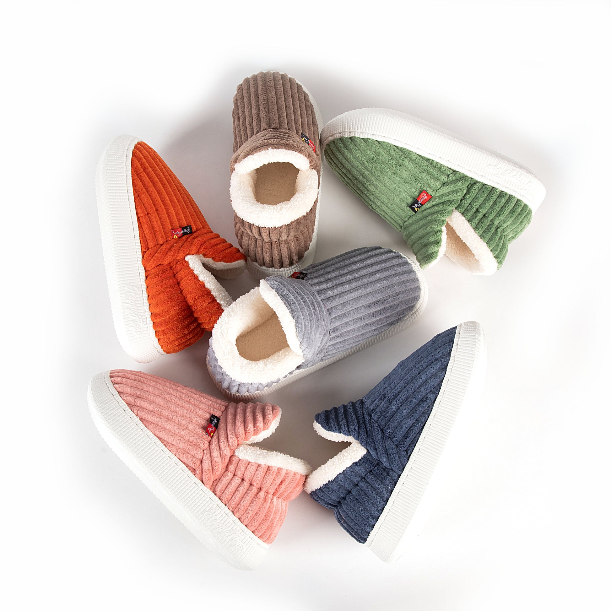 HappyCozy je vyrobený z vegánskeho plyšového kožúška a udržateľného materiálu EVA, ktorý spája teplo a podporné pohodlie pre vaše nohy.